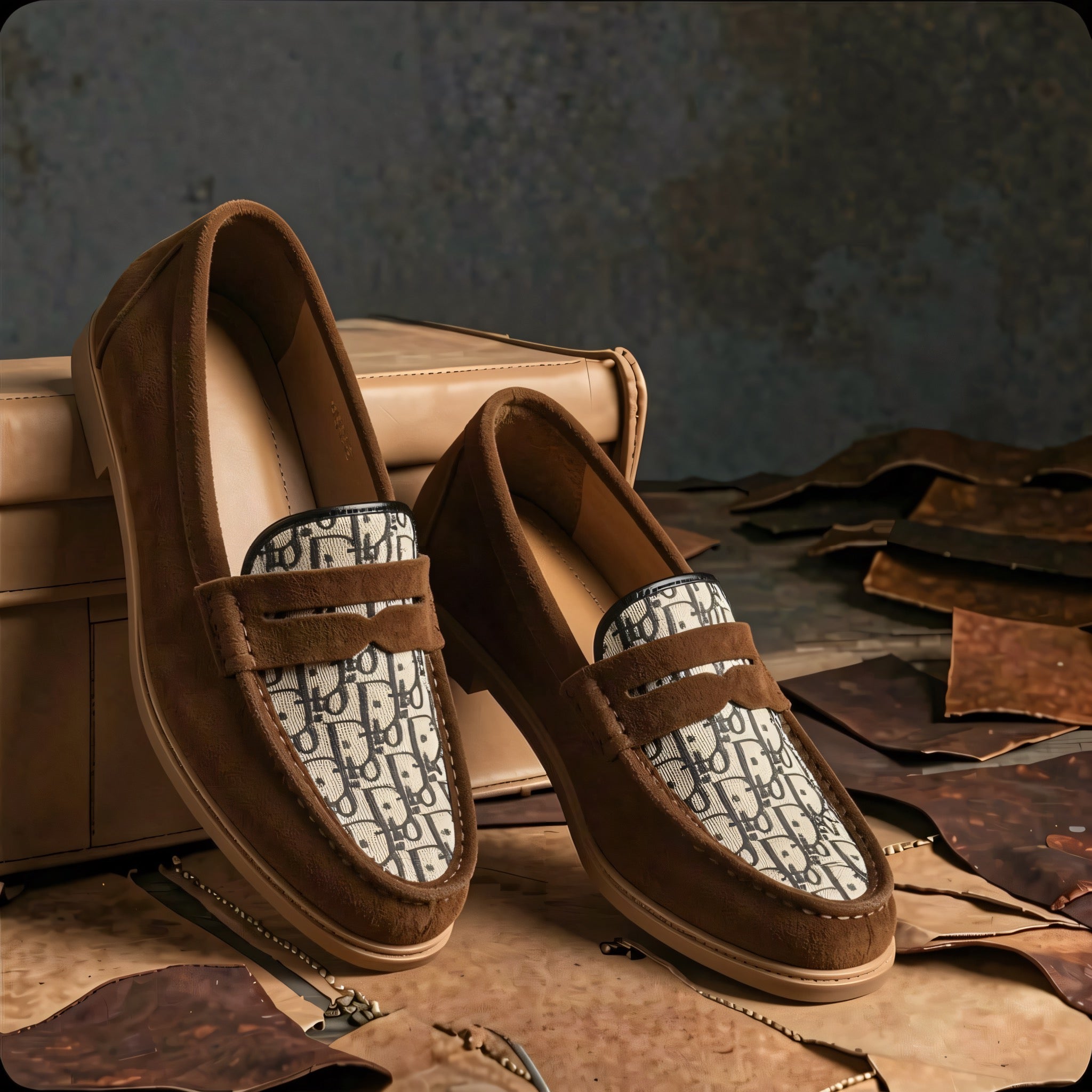 • The Look: A sophisticated tan suede body paired with a high-contrast signature print for that "quiet luxury" (but not too quiet) vibe. 👞💼